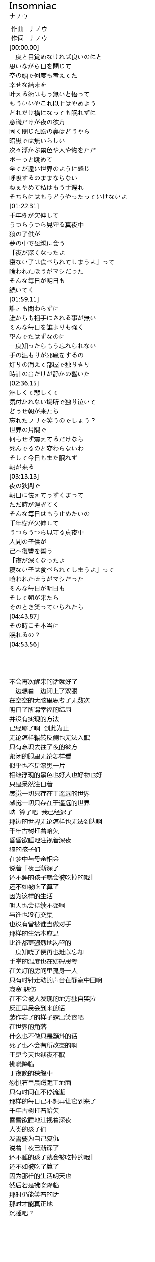 | [03:07.43] | そして今日もまた眠れず |