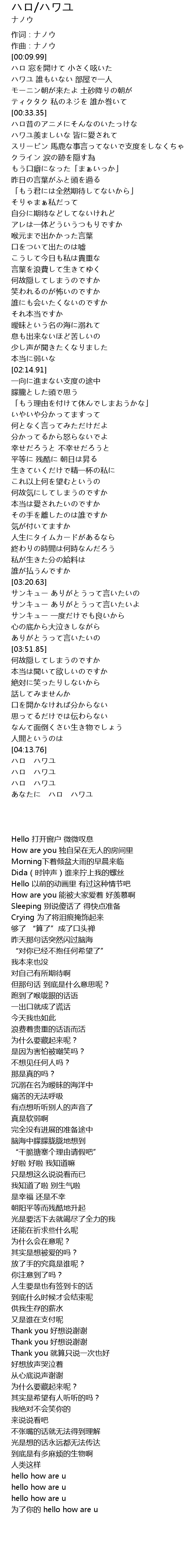 | [04:21.46] | ハロ ハワユ |