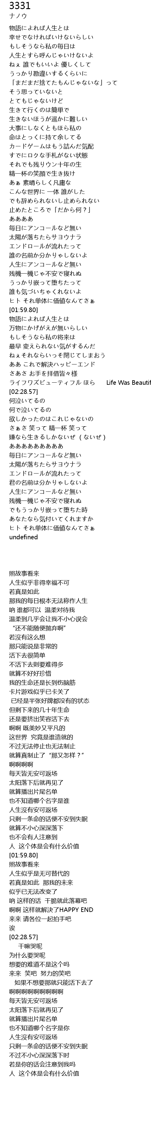 | [02:23.27] | Life Was Beautiful |
