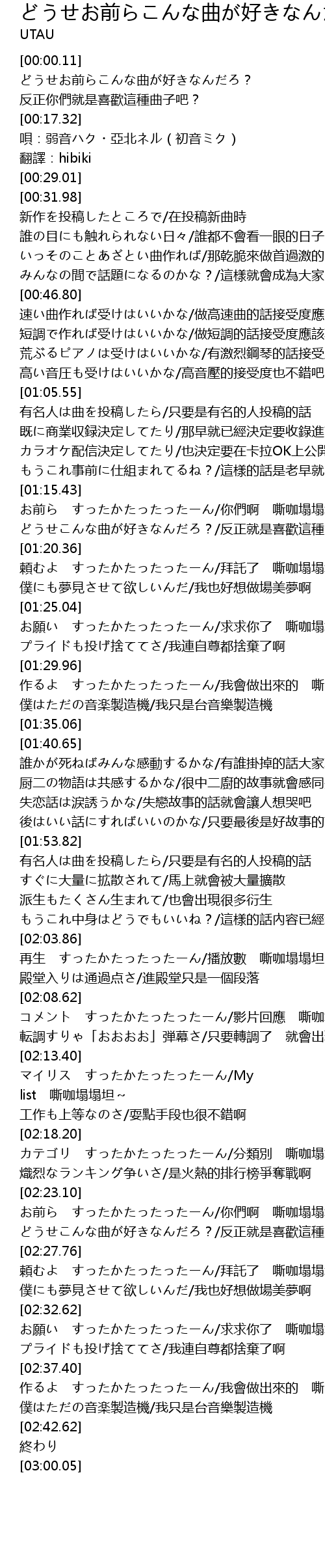 | [01:05.88] | 有名人は曲を投稿したら/只要是有名的人投稿的話 |