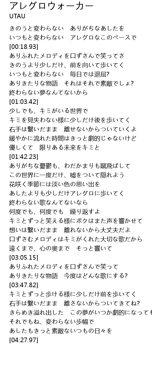 | [02:13.09] | あしたよりも少しだけアレグロに歩いてく |