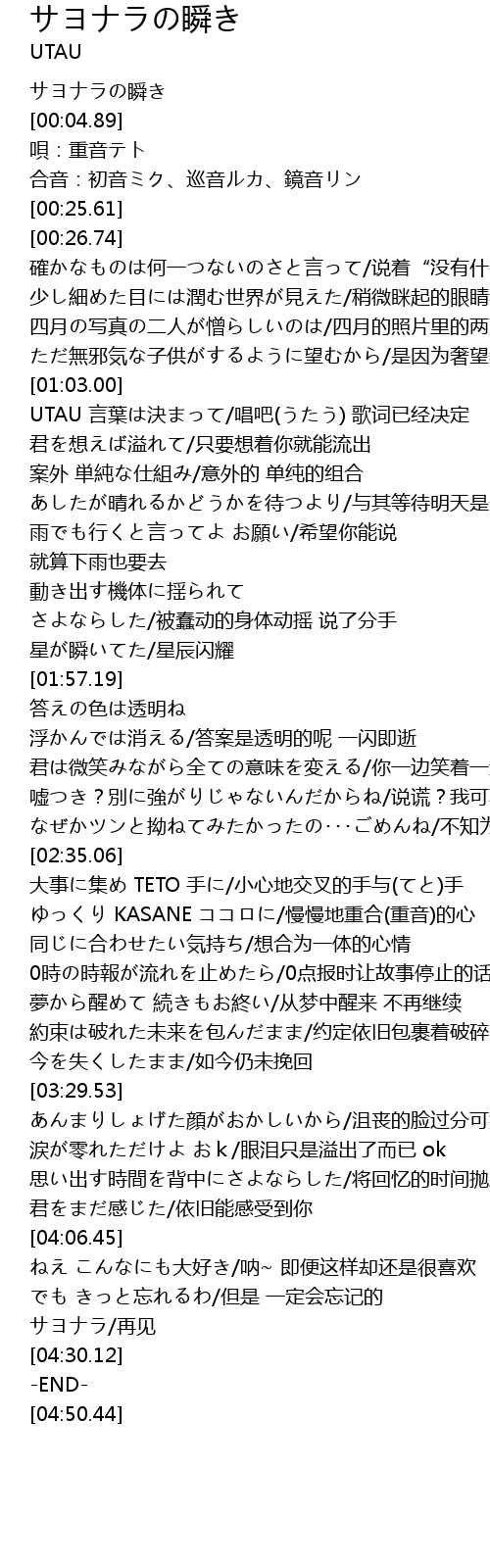 | [04:24.92] | サヨナラ/再见 |