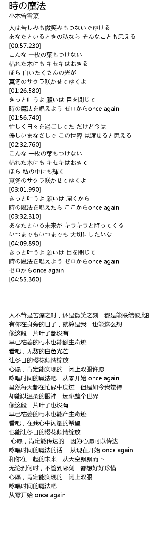 | [03:16.490] | 時の魔法を唱えたら ここからonce again |