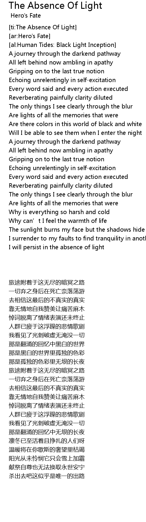 | [03:19.86] | 旅途附着于这无尽的暗冥之路 |