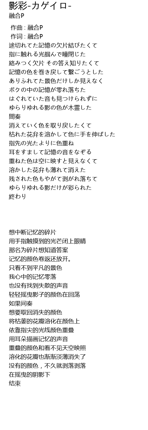 | [00:01.00] | 作词 : 融合P |