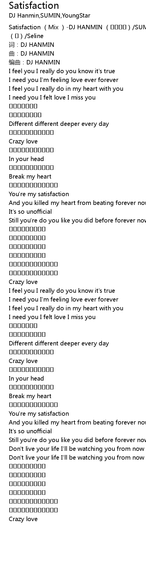 | [00:00.00] | Satisfaction Mix DJ HANMIN SUMIN Seline |