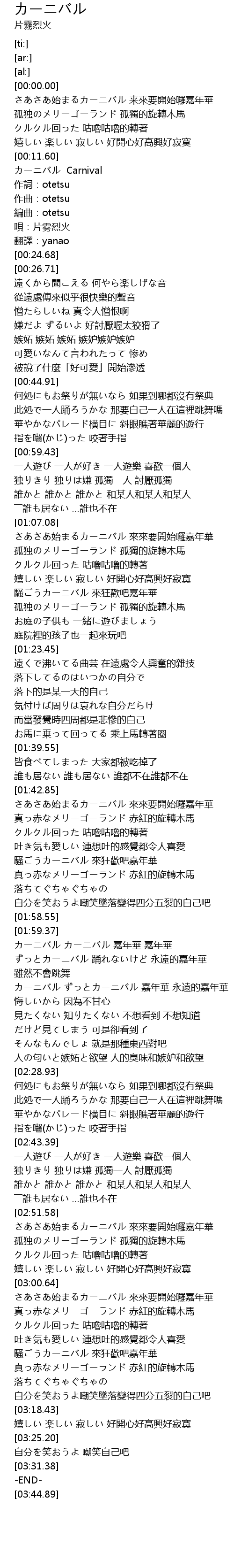 | [02:12.73] | カーニバル カーニバル 嘉年華 嘉年華 |
