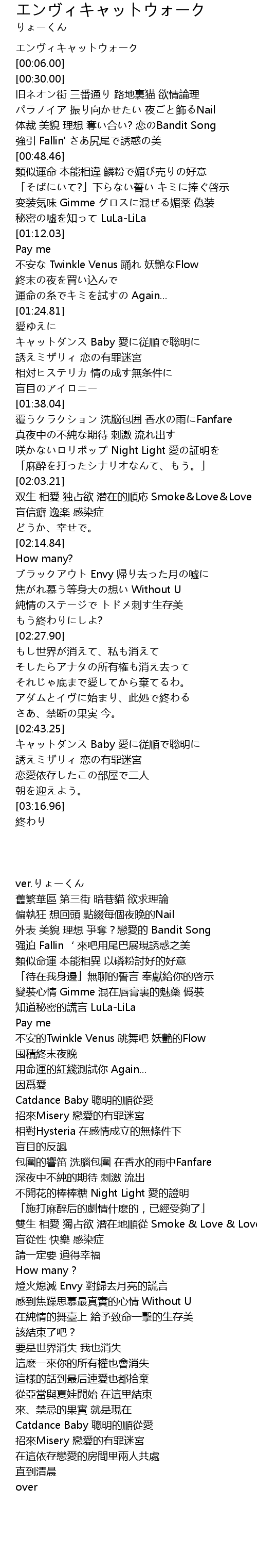| [02:15.56] | 燈火熄滅 Envy 對歸去月亮的謊言 |