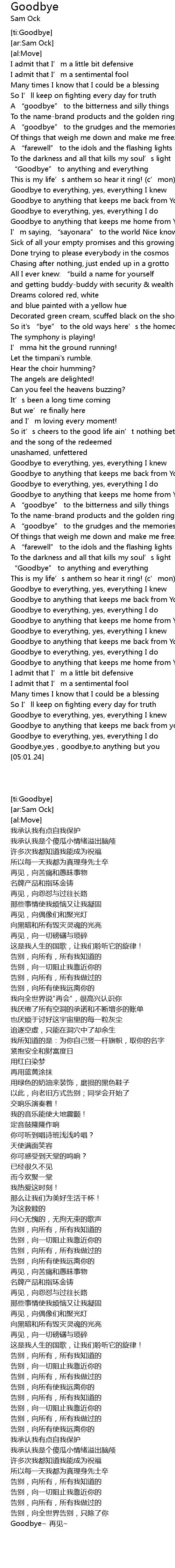 | [05:01.24] | Goodbye~ 再见~ |