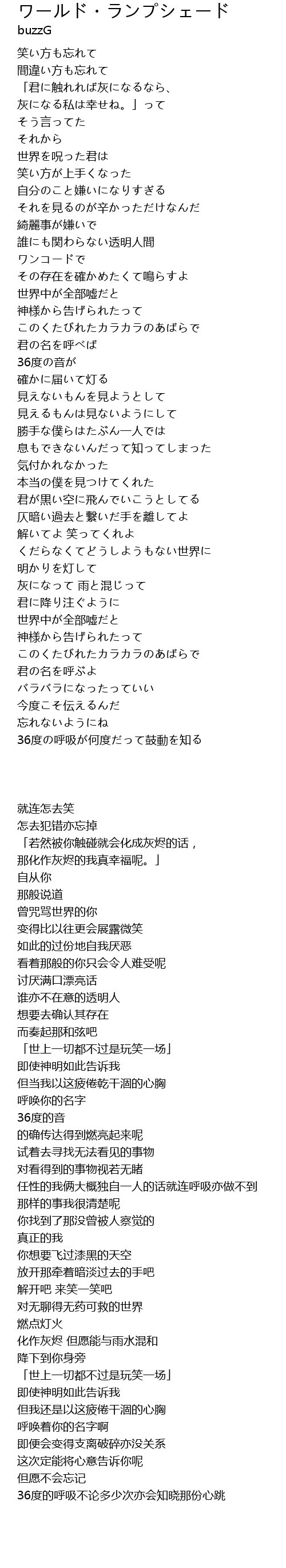 | 歌曲 | ワールド・ランプシェード |