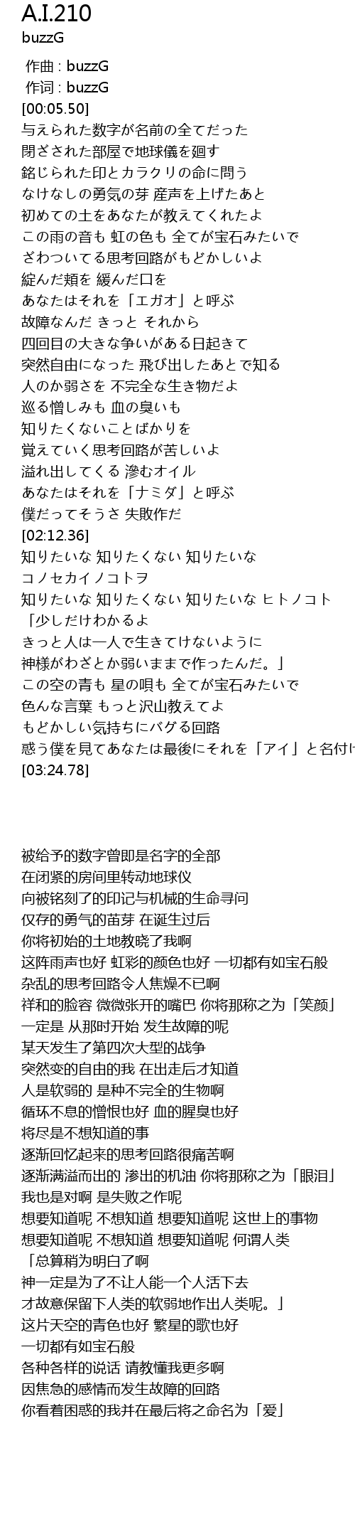 | [03:15.38] | 惑う僕を見てあなたは最後にそれを「アイ」と名付けた |