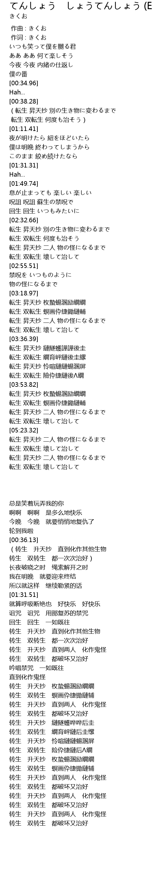 | [03:36.76] | 転生 昇天抄 縺隧蠖譁譁後圭 |