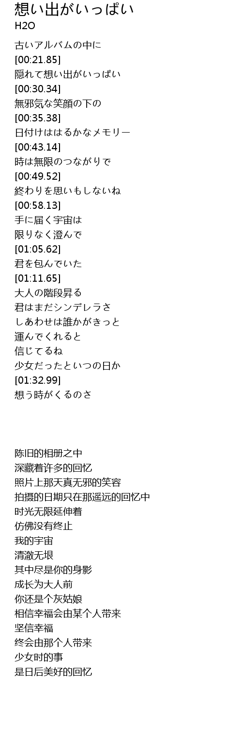 | [00:23.67] | 隠れて想い出がいっぱい |