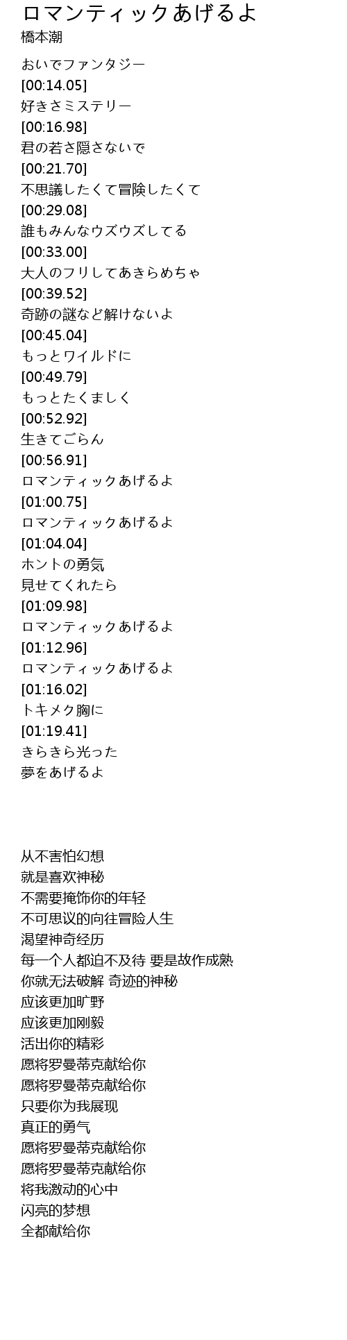 | [01:13.91] | 愿将罗曼蒂克献给你 |