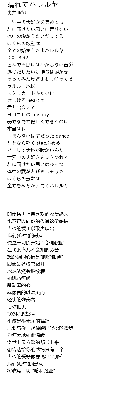 | [00:13.24] | 便是一切的开始 "哈利路亚" |
