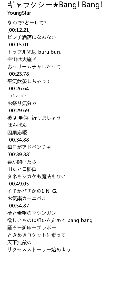 | [00:58.35] | 欲しいものに狙いを定めて bang bang |