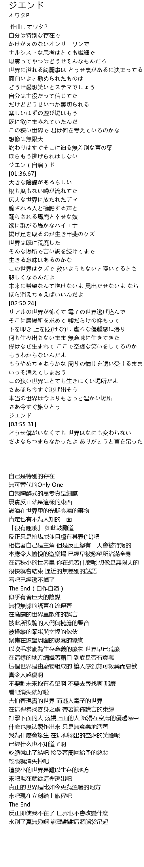 | [01:35.78] | The End(自作自演) |