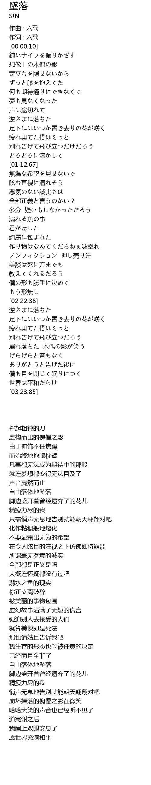 | [02:59.10] | 崩れ落ちた 木偶の影が笑う |