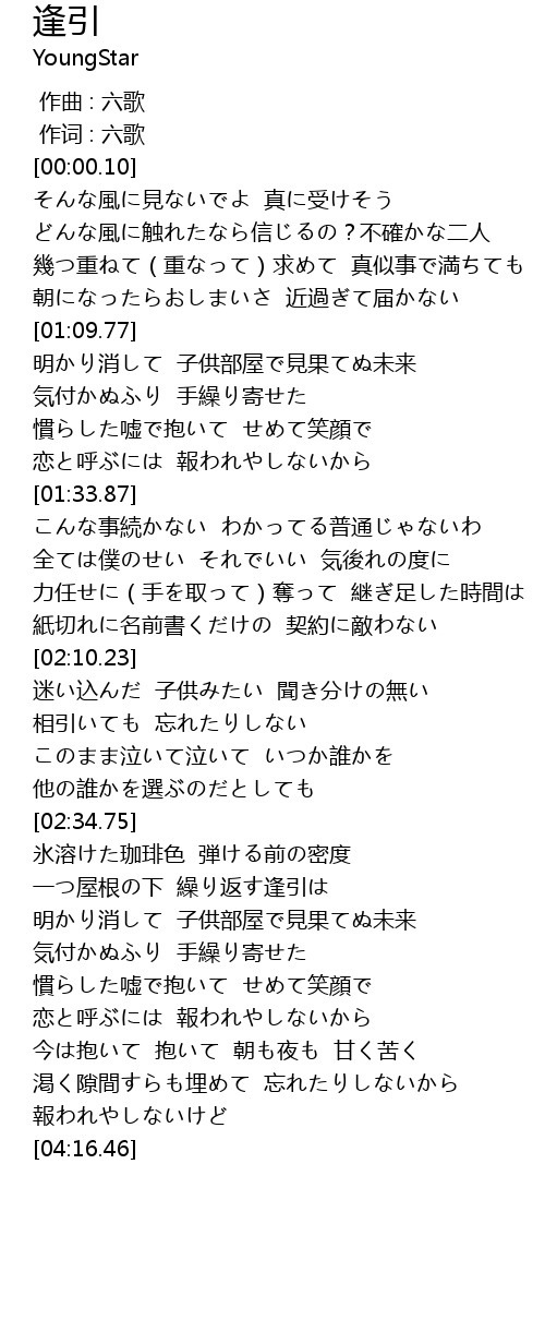 | [03:38.63] | 気付かぬふり 手繰り寄せた |