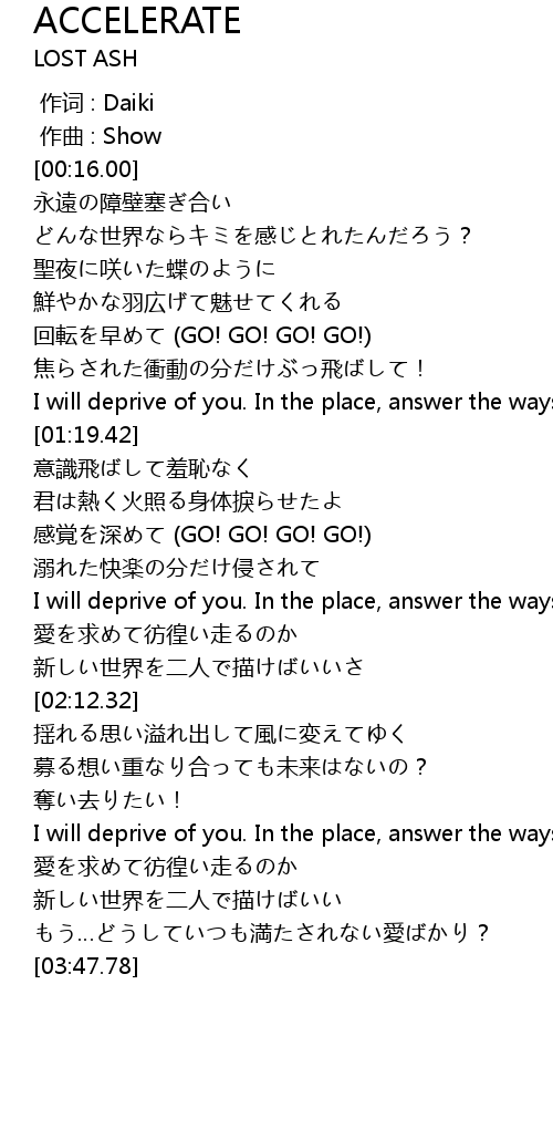 | [03:16.65] | I will deprive of you. In the place, answer the ways of me. |