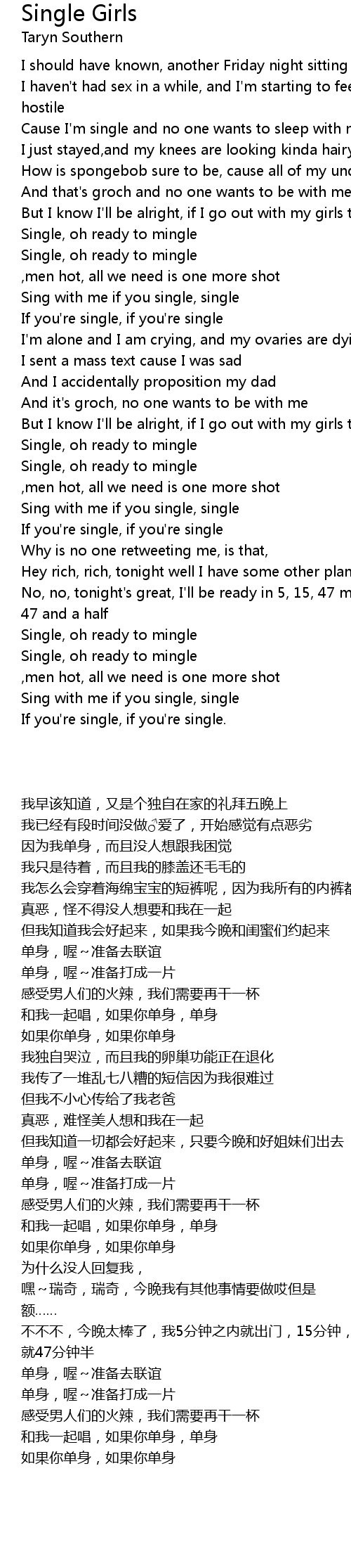 Single, oh ready to mingle |