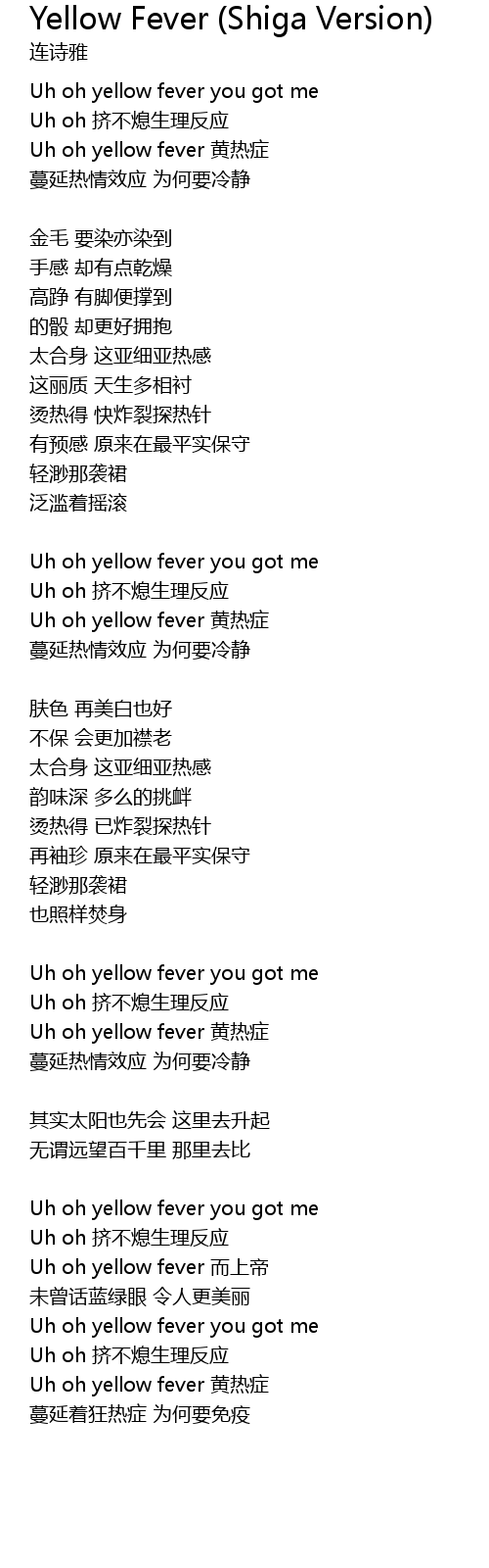 | 歌曲 | Yellow Fever (Shiga Version) |