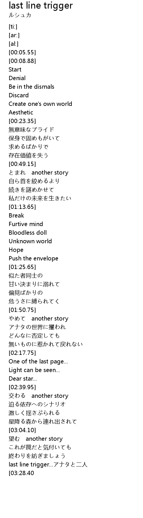 | [03:21.00] | last line trigger...アナタと二人 |