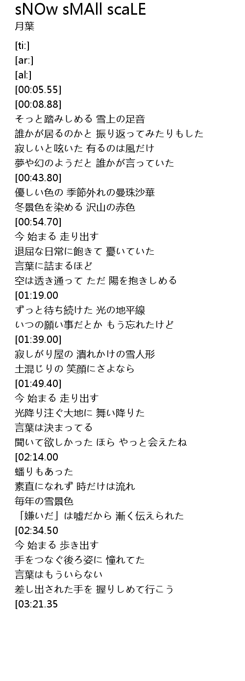 | [00:22.00] | そっと踏みしめる 雪上の足音 |