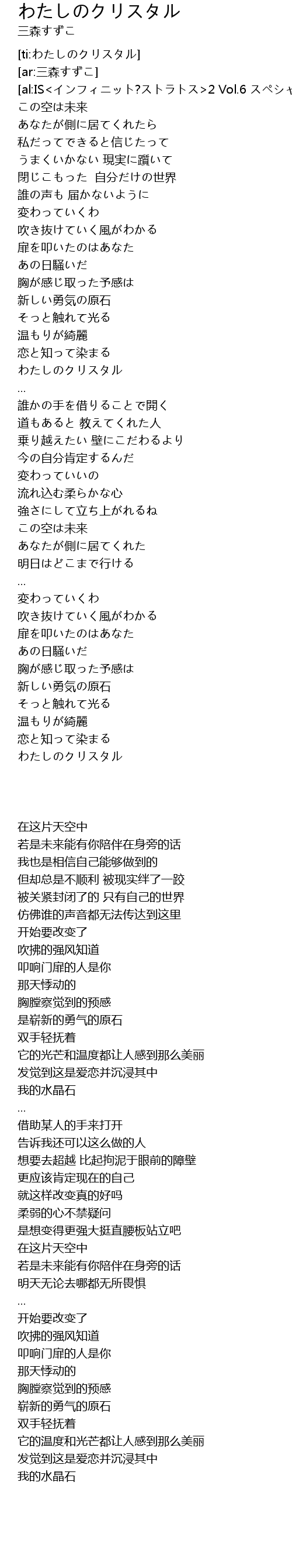 | [03:31.61] | わたしのクリスタル |