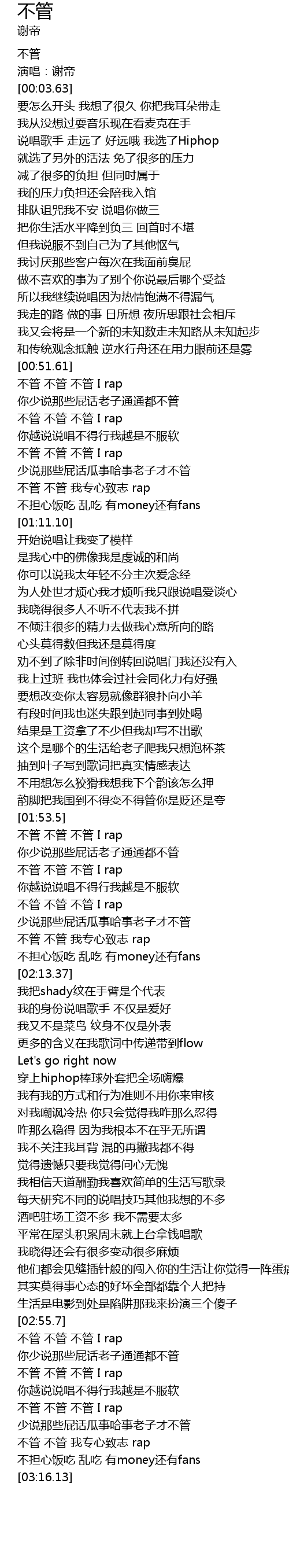 | [03:01.49] | bu guan bu guan bu guan I rap |