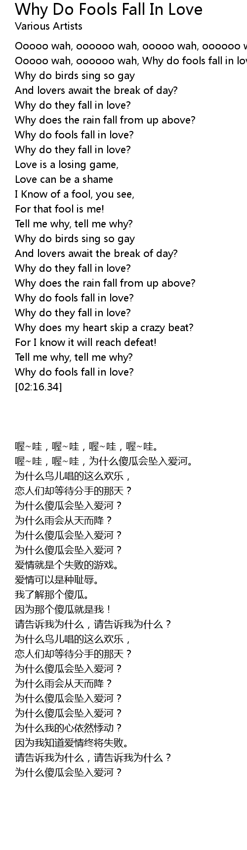 Ooooo wah, oooooo wah, Why do fools fall in love |