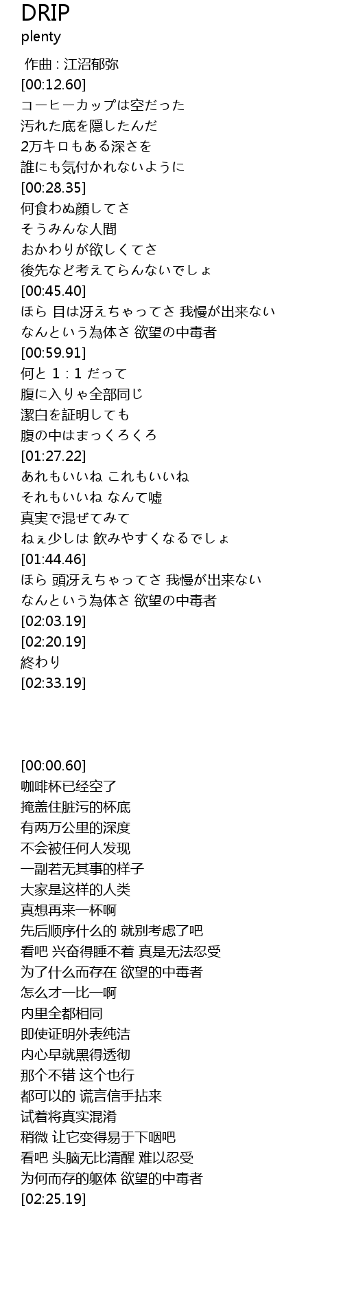 | [01:52.52] | なんという為体さ 欲望の中毒者 |