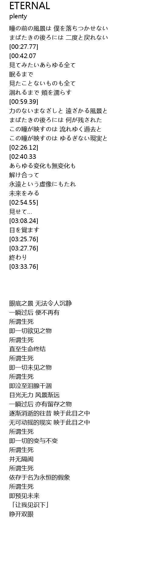 | [02:47.26][02:40.33][02:33.56][02:26.75] | 死、生 |