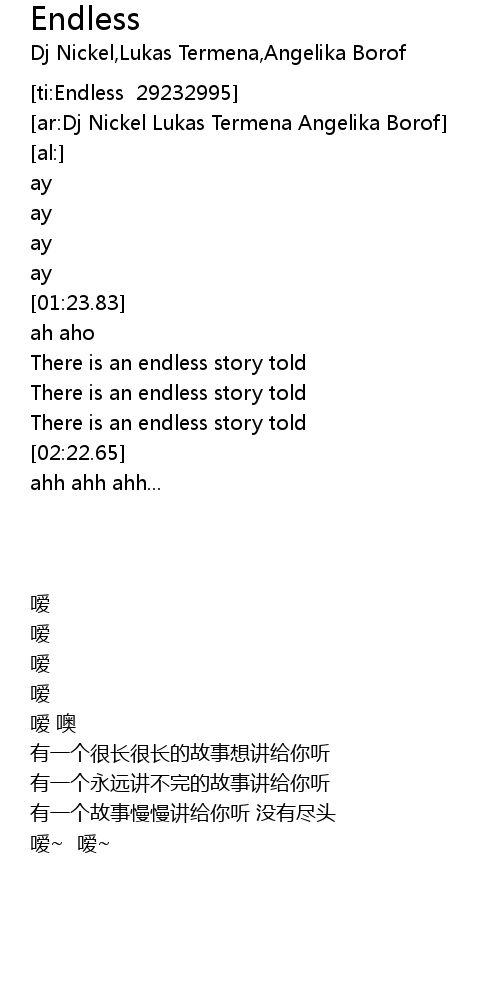| [02:14.92] | 有一个故事慢慢讲给你听 没有尽头 |