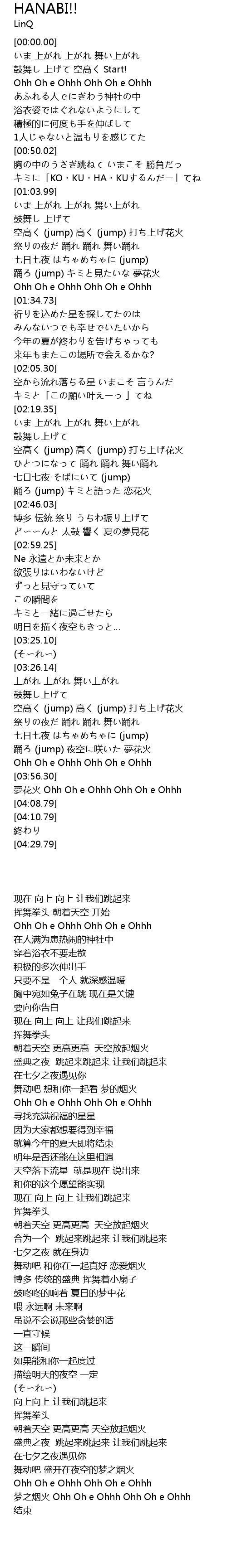 | [02:25.13] | 空高く (jump) 高く (jump) 打ち上げ花火 |