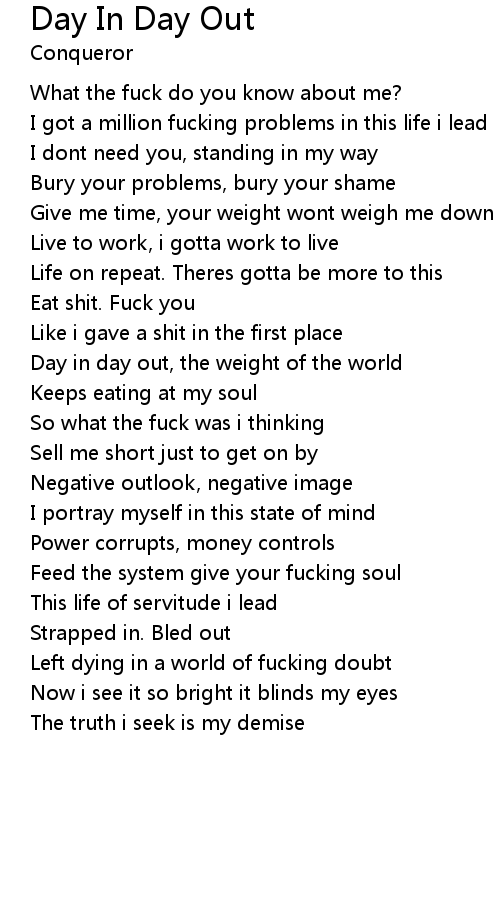 Day in day out, the weight of the world |