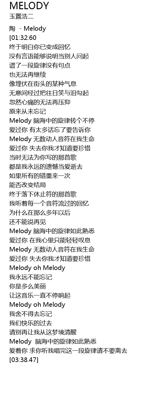 | [02:26.04] | Melody 脑海中的旋律如此熟悉 |