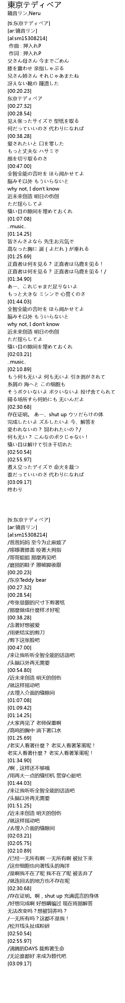 | [00:21.26] | /东京Teddy bear |