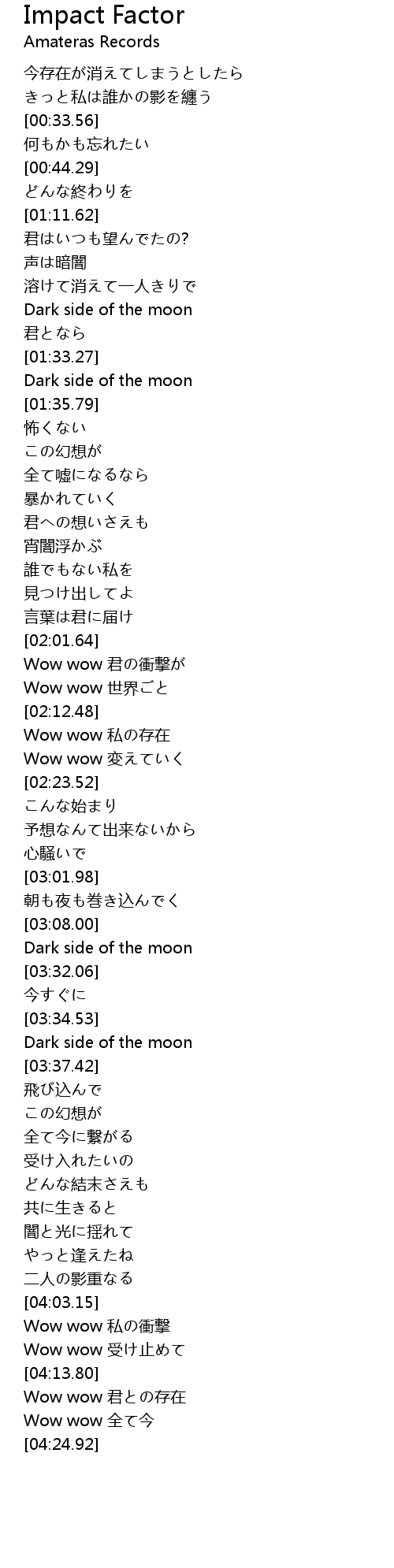 Wow wow 君の衝撃が |