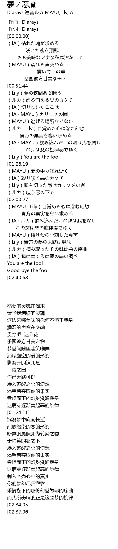 | [02:22.05] | (Lily)貴方の夢の末路は泡沫 |