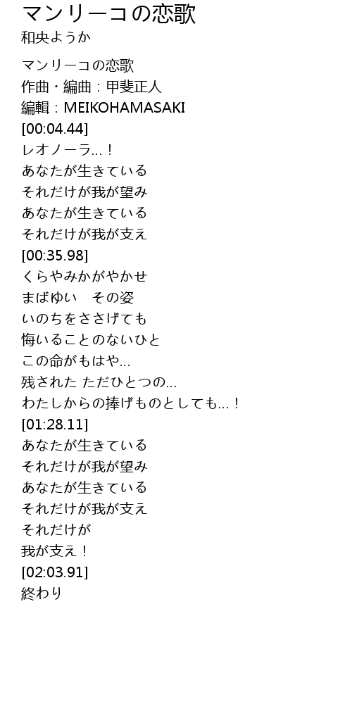 | [00:00.00] | マンリーコの恋歌 |