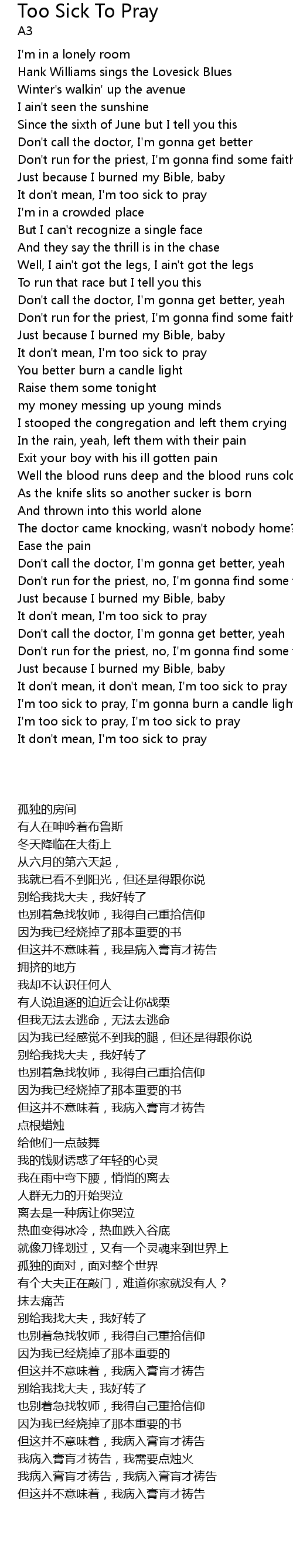 I'm too sick to pray, I'm too sick to pray |