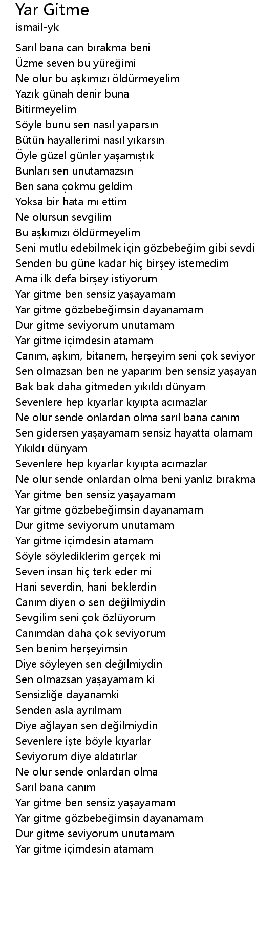 | Yar gitme i imdesin atamam |