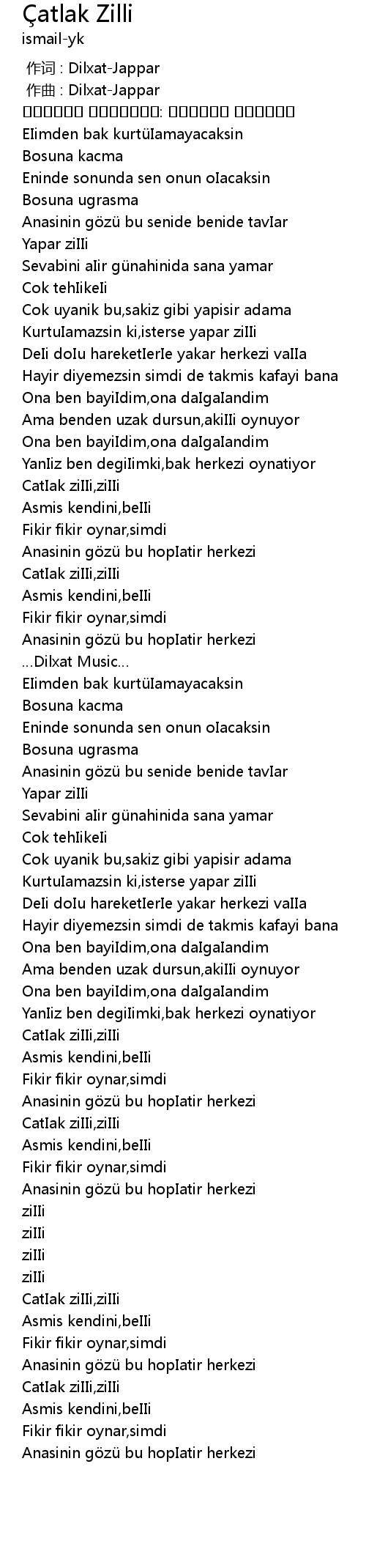 | [00:00.000] | 作词 : Dilxat-Jappar |