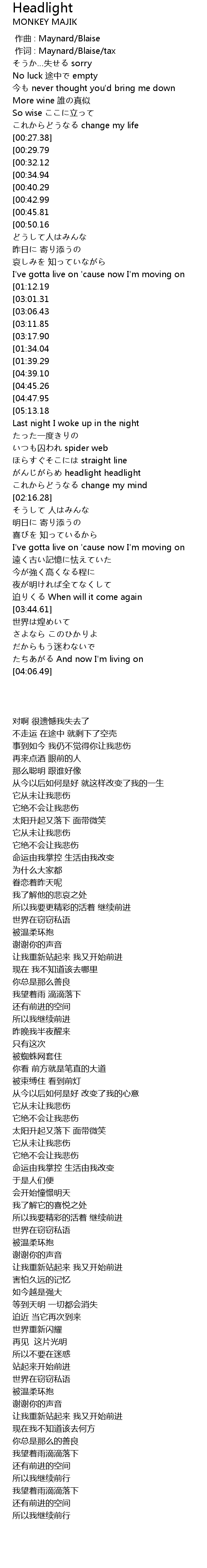 | [02:10.39] | がんじがらめ headlight headlight |
