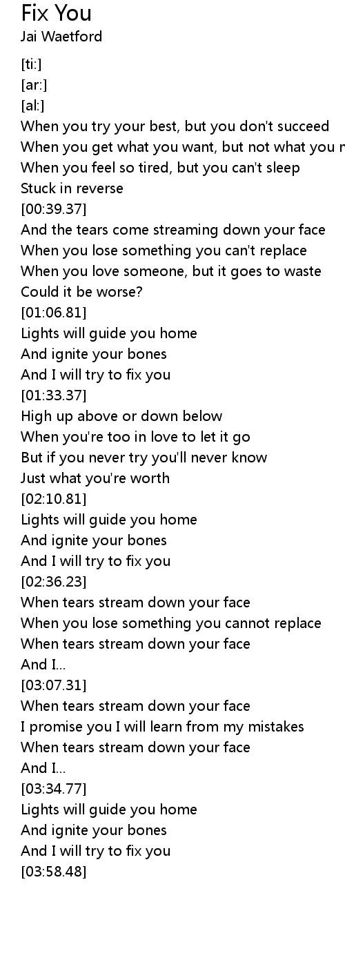 And I will try to fix you |