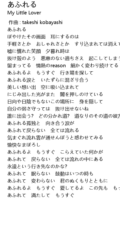 | [05:02.20] | あふれるよ もうすぐ 愛してるよ この先も もっと |