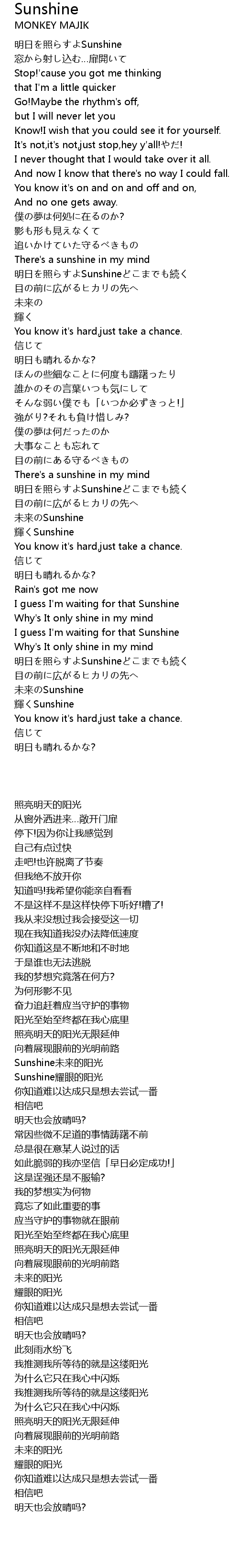 | [01:15.420] | Sunshine耀眼的阳光 |