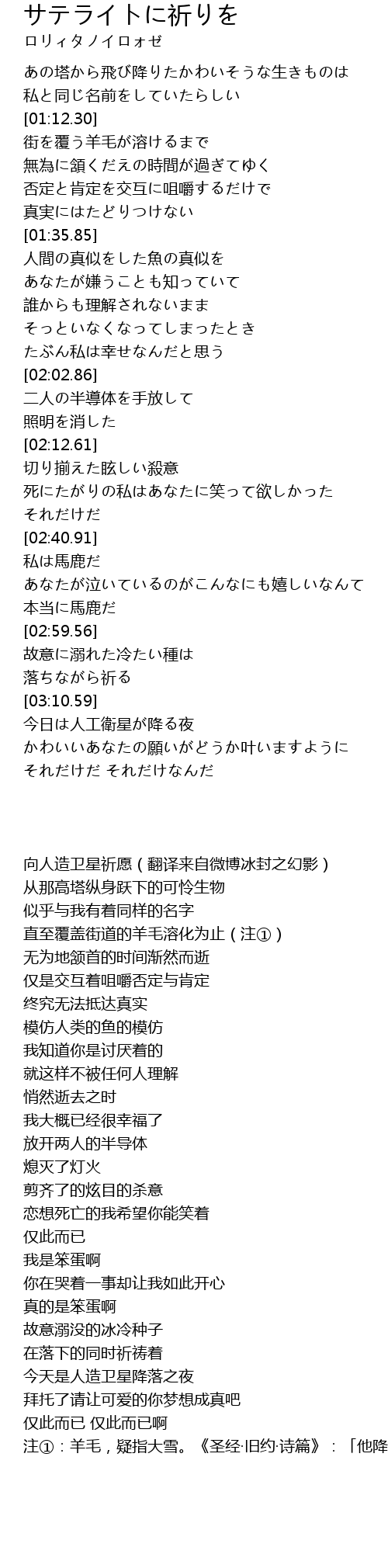 | [00:00.00] | 向人造卫星祈愿(翻译来自微博冰封之幻影) |