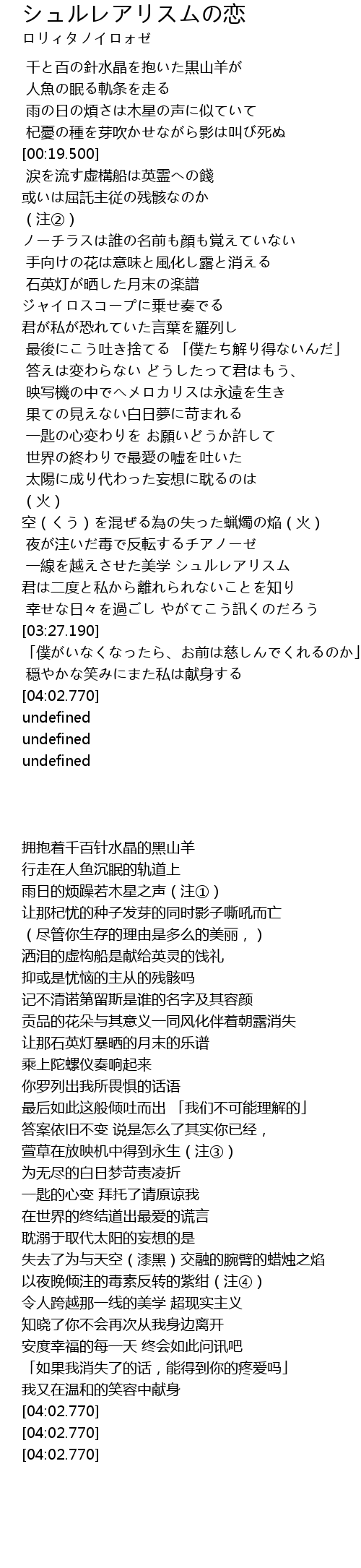 | [02:19.160] | 夜が注いだ毒で反転するチアノーゼ |